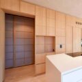 El espacio está diseñado para ser versátil, con mesas móviles y linternas de papel de arroz montadas sobre rieles que se pueden reorganizar para adaptarse a reuniones informales o eventos de degustación.