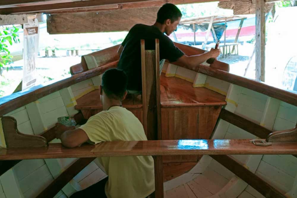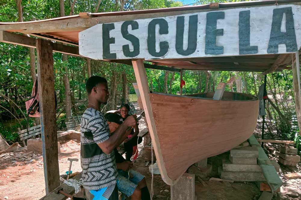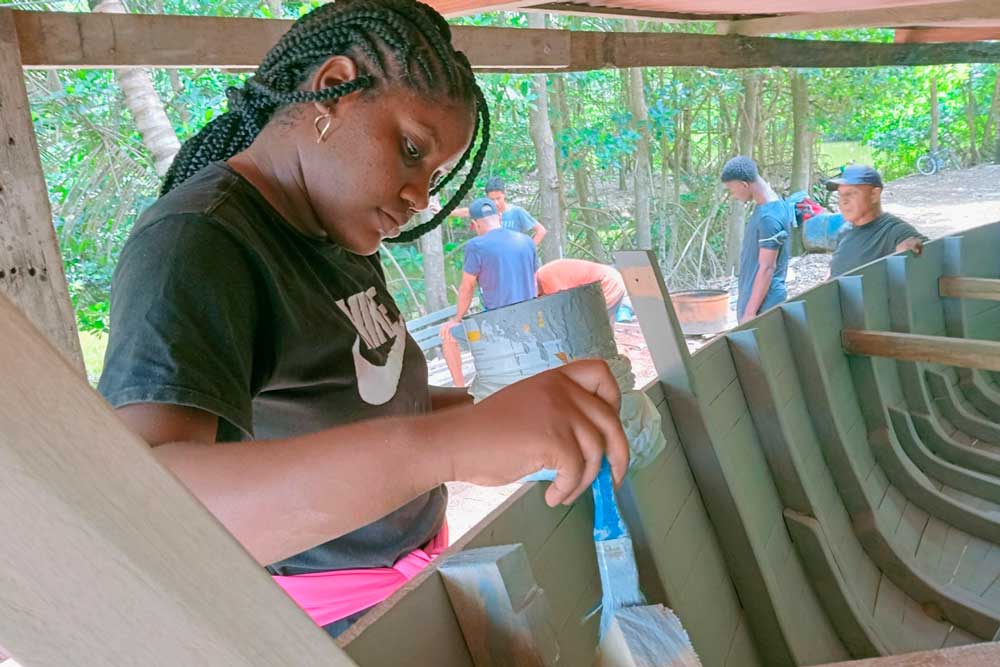 Jóvenes de la región formados de los hermanos Luis y Jorge Coneo, maestros constructores y carpinteros navales, que se dedican a reparar embarcacones de madera y fibra de vidrio, apoyados por el maestro carpintero Arcelio Arias.
