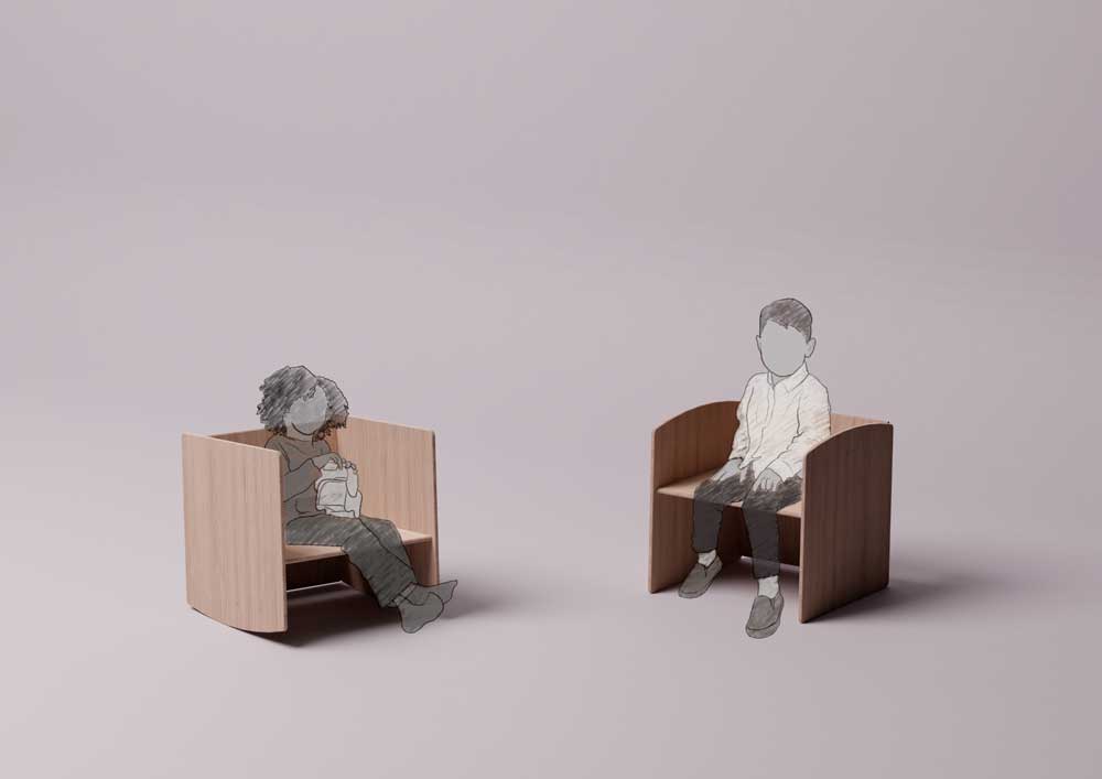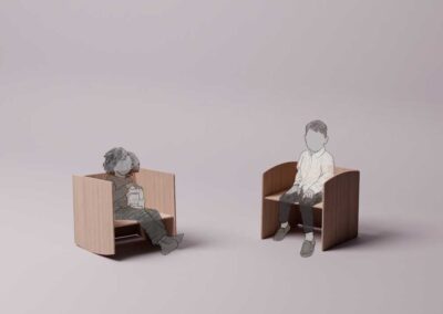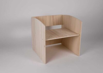 Flip es una silla infantil diseñada por Mia Friis que se puede voltear y usar de dos maneras diferentes. Partí de la idea de que la siguiente posición para sentarse es la mejor, con el objetivo de crear un mueble que pudiera usarse de múltiples maneras, permitiendo al niño sentarse como prefiera.