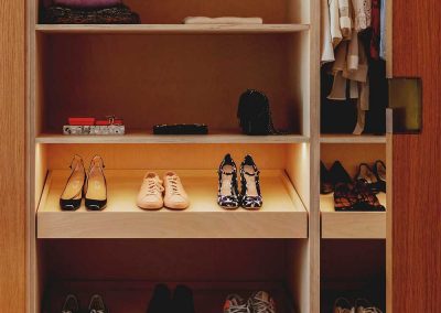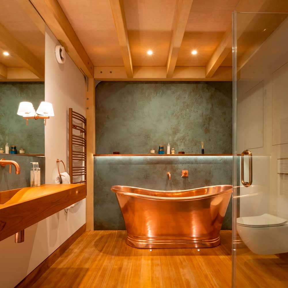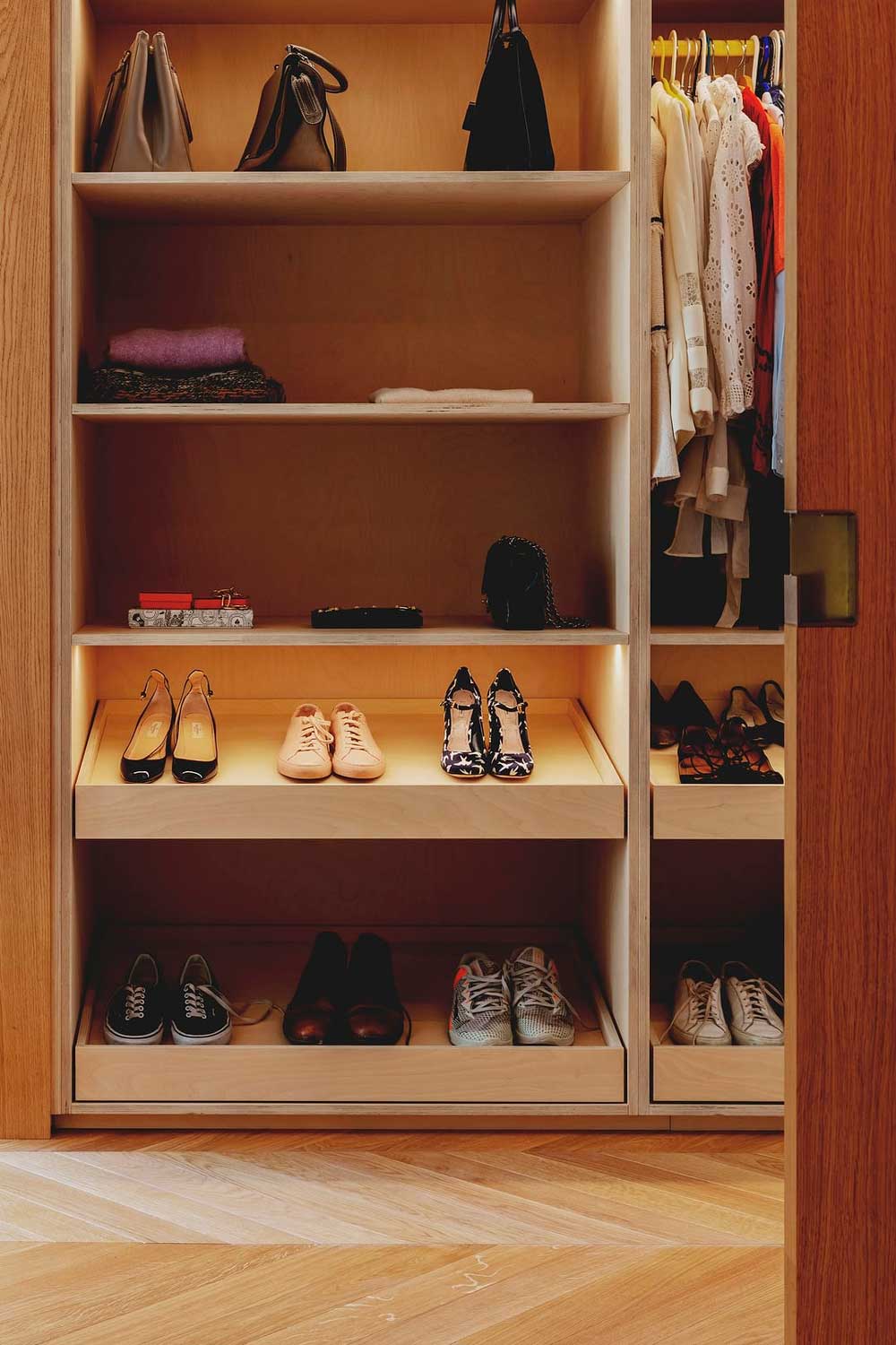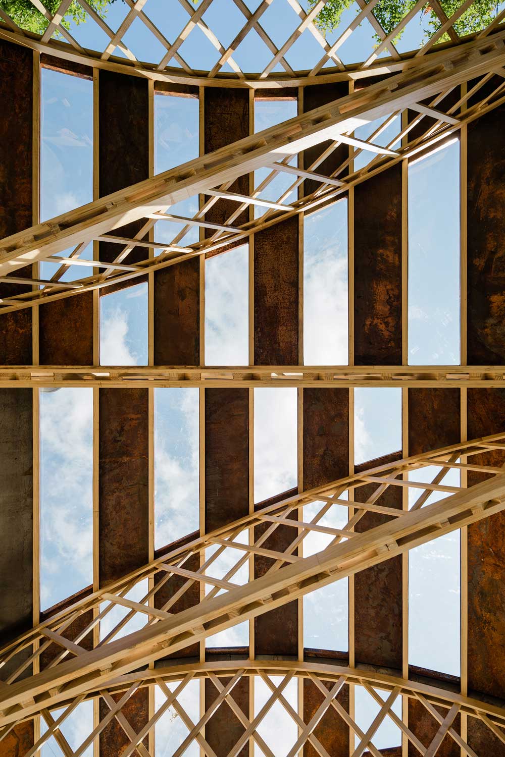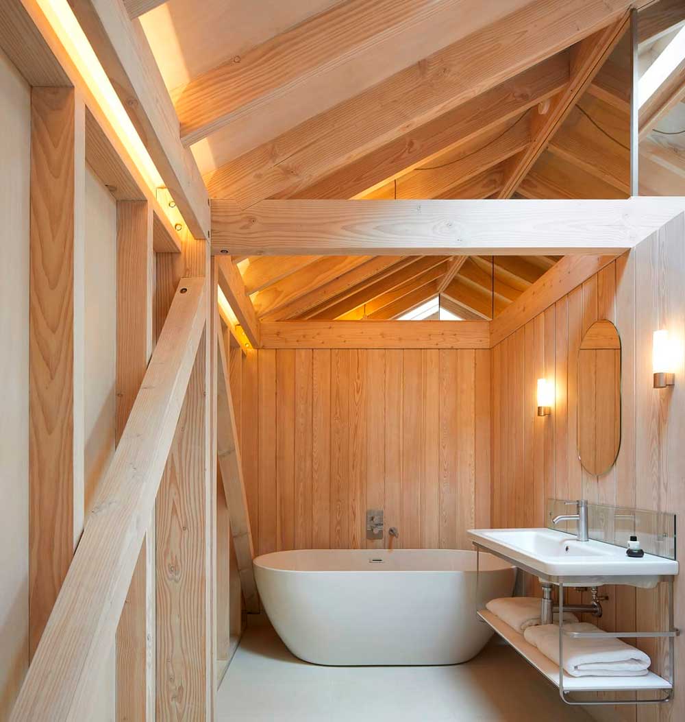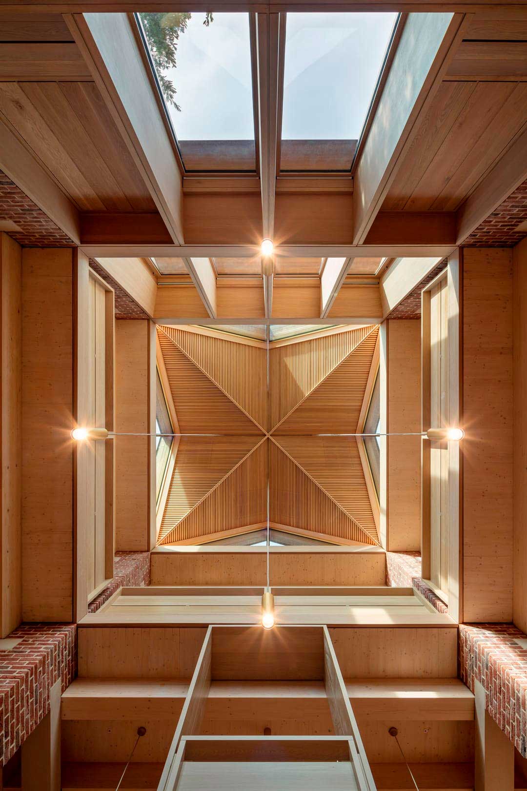 La veta recta de la madera se ha expuesto deliberadamente en todos los niveles para mostrar su belleza.