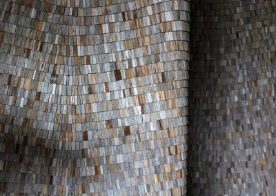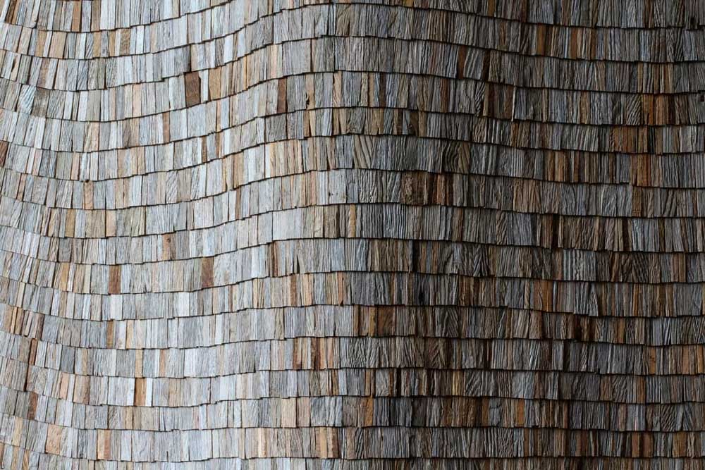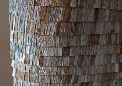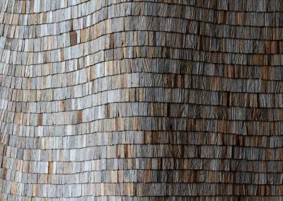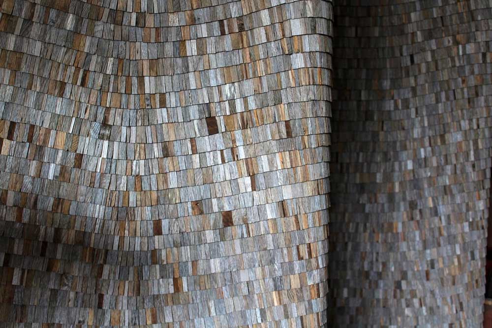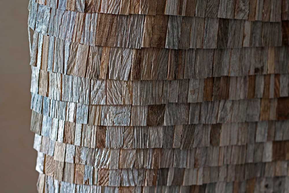 La variedad de colores y texturas se explica por las diferentes formas en que la madera reaccionó a la intemperie, y esta pieza es un intento de mostrar las muchas formas maravillosas en que la madera responde a su entorno.