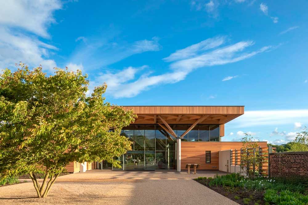 El edificio de bienvenida se encuentra dentro del nuevo jardín de RHS en el sitio del Worsley New Hall de 154 acres. El centro proporciona una puerta de entrada a los jardines, así como un punto de encuentro e interacción para visitantes, restaurante, tienda de regalos, oficinas y espacios educativos.