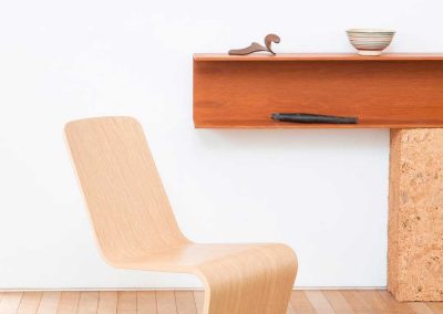 La pieza se inspiró en el logo de Isokon y, en particular La silla “Bent Plywood” de Gerald Summers con su única superficie de madera contrachapada que fluye; y la silla “Zig-Zag” de Gerrit Rietveldt ”.