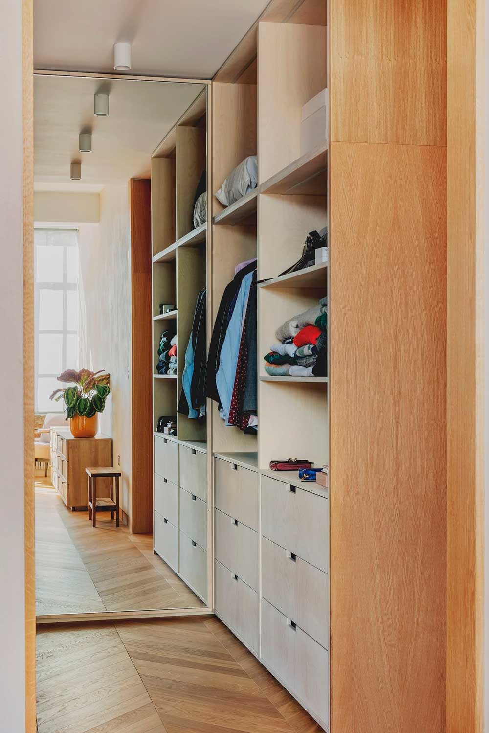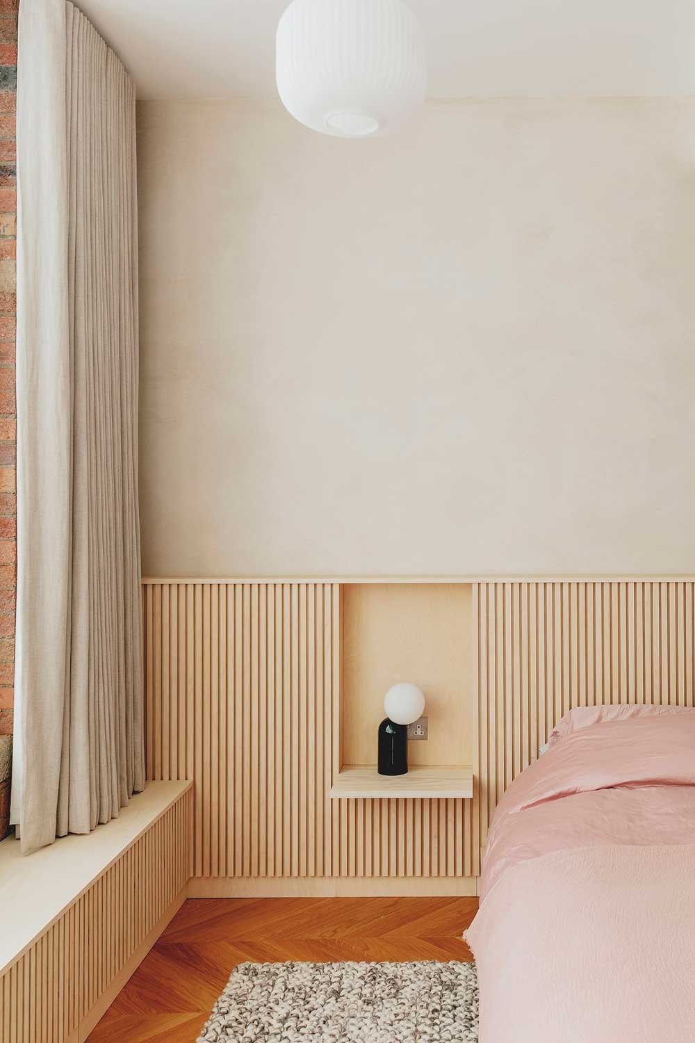 “Me impresionaron las intervenciones de toque ligero que dieron al apartamento del almacén una nueva identidad. El proyecto es un ejemplo del uso continuo de una estructura de ladrillo y hormigón duradera, pero con alto contenido de carbono, sostenida por interiores de madera de alta calidad ”, dice Jonas Lencer, uno los jurados.