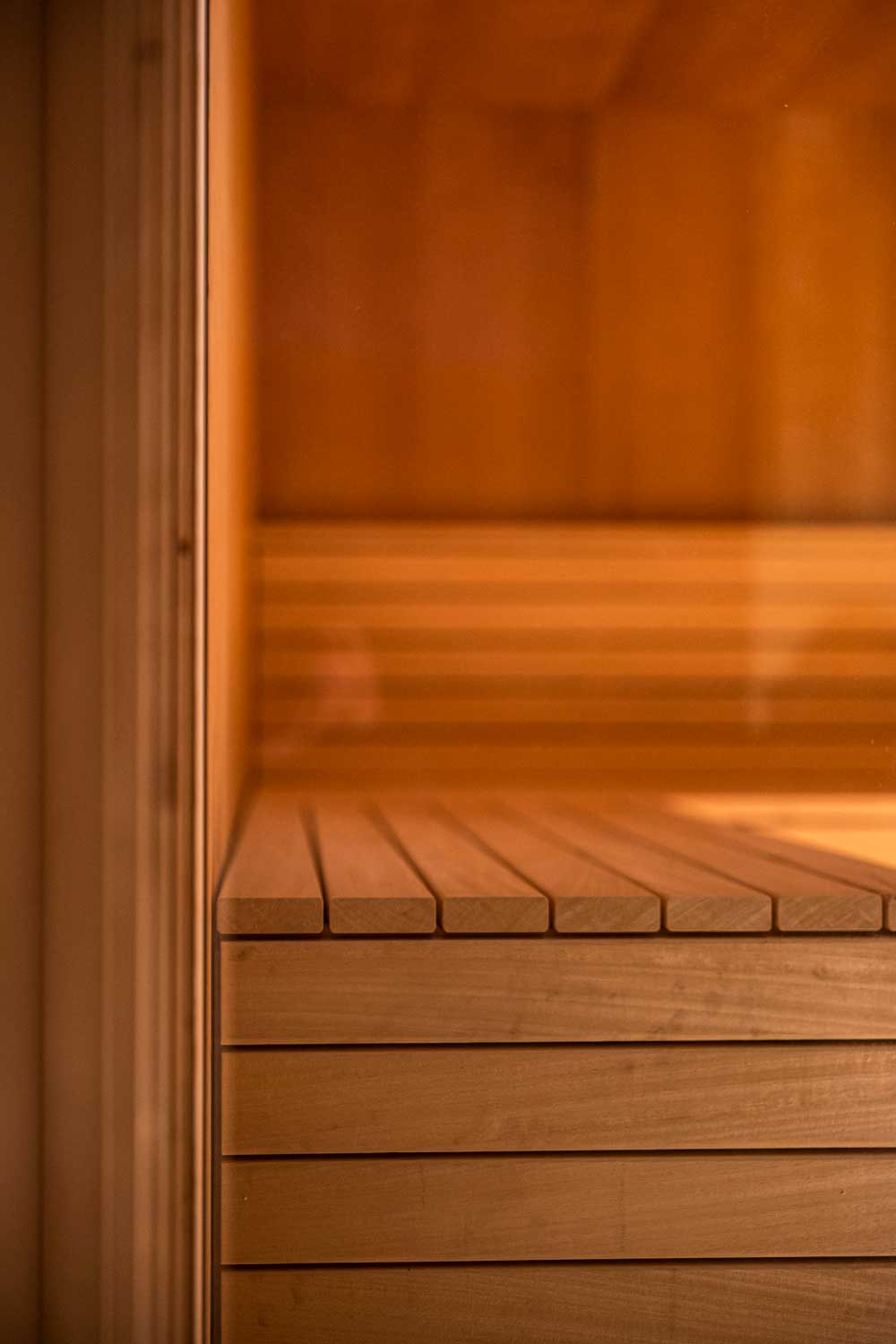 En el interior del habitáculo principal, la relación de aspecto es de 1:1. Esta proporción perfecta no es una casualidad estética, sino una herramienta para generar una sensación de tranquilidad absoluta. En un espacio cuadrado y contenido, la mente deja de divagar y el cuerpo encuentra un punto de quietud, preparándose para el ritual del calor.