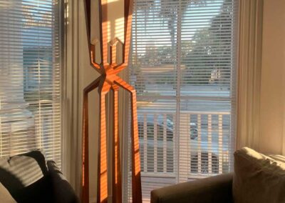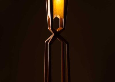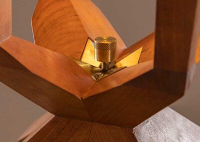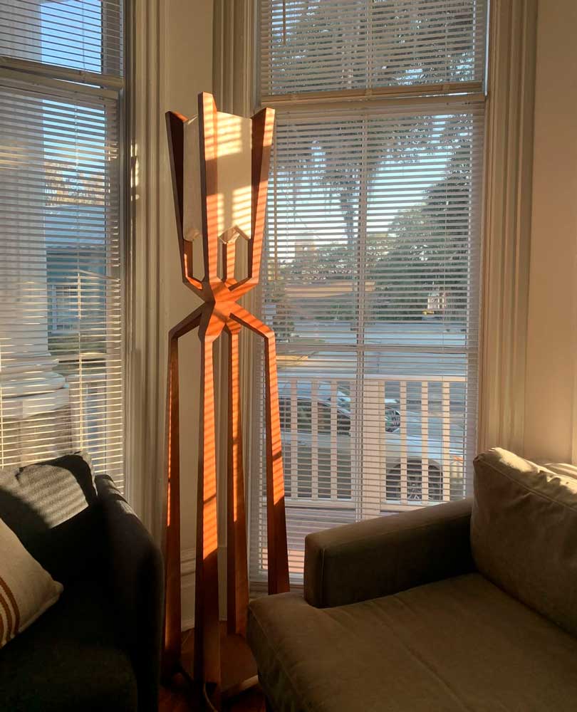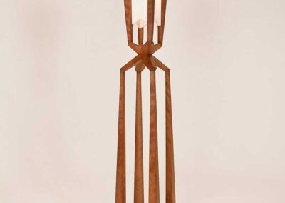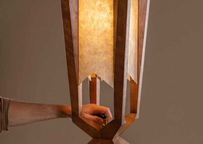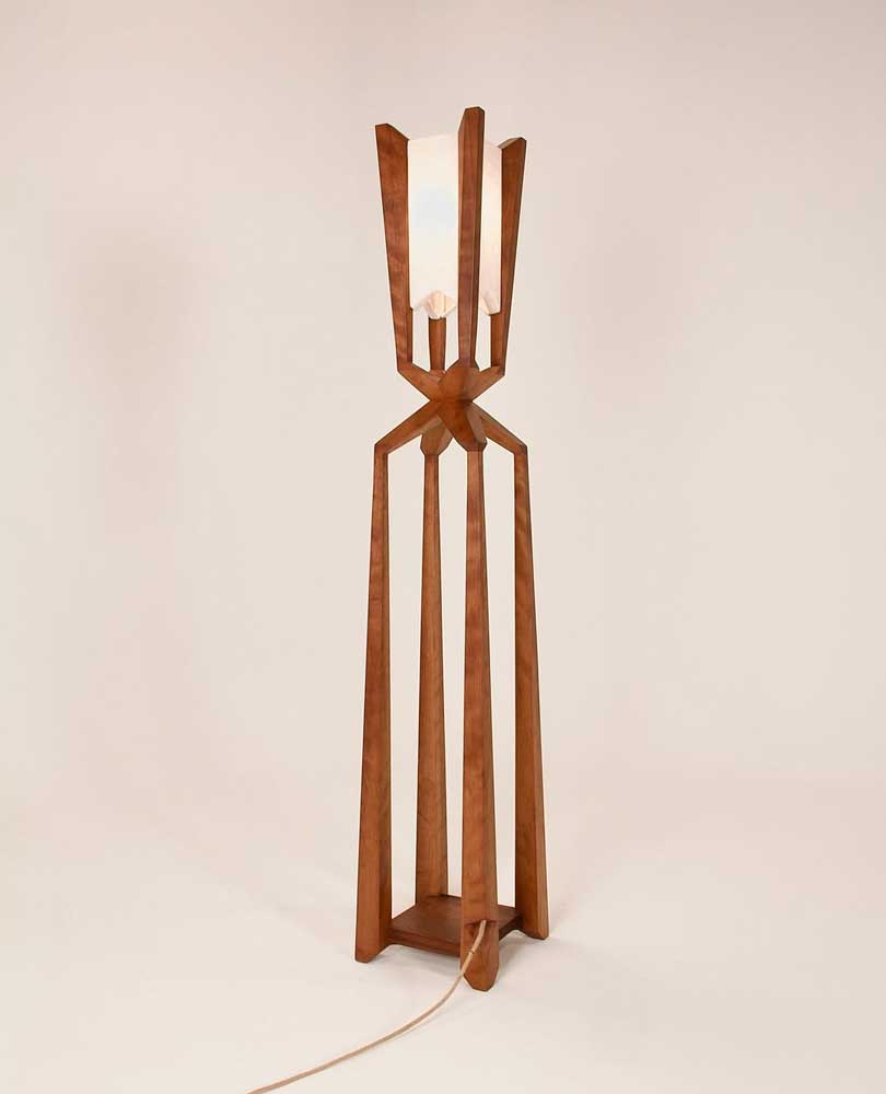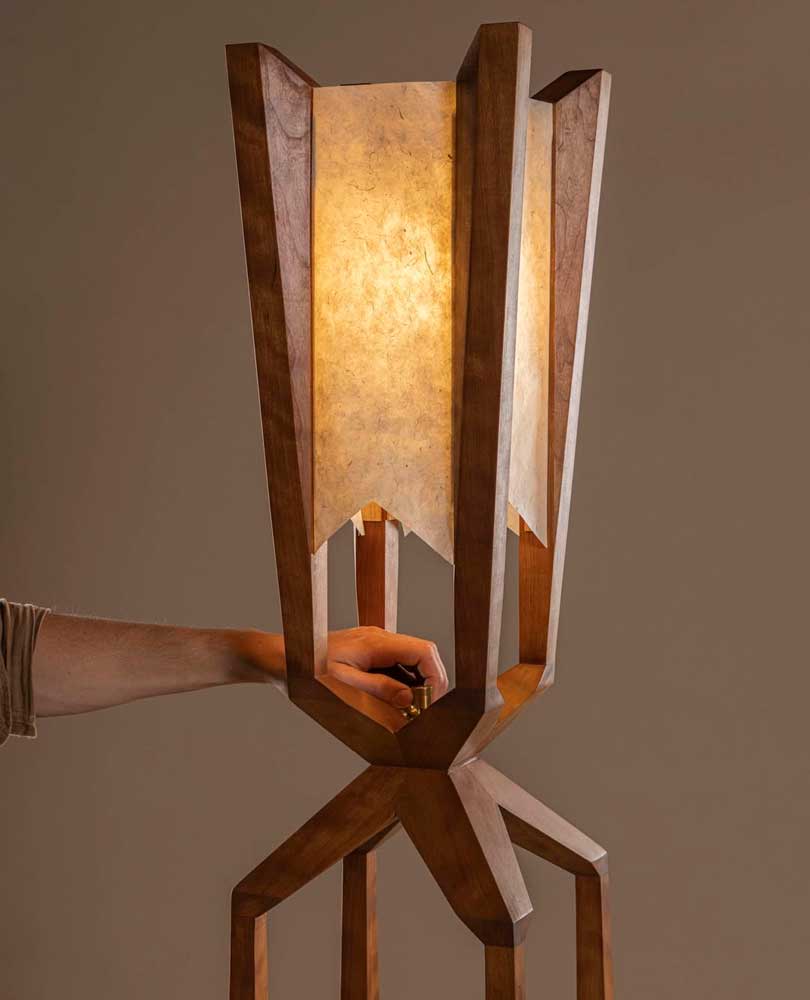 La lámpara Limina diseñada por Drew Hart⁠ de la universidad Savannah College of Art and Design⁠ está elaborada a partir de una sola tabla de madera de cerezo de origen local, con proporciones equilibradas y una elegante simetría.