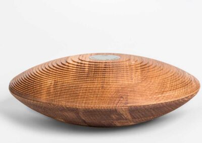 La partida final es el capítulo más misterioso de la vida. Para conmemorar este momento con elegancia y respeto, LIMO creó una urna única. Elaborada en madera y latón, es elegante, cálida, sostenible y respetuosa con el medio ambiente. Sus curvas, moldeadas mediante la eliminación de capas, revelan un patrón que recuerda a los anillos de crecimiento de un árbol, dando testimonio silencioso del tiempo que pasó demasiado rápido. Más ancha que alta, la urna se lleva con ambas manos, apoyada en las palmas, como el mayor tesoro que jamás tendremos, honrando una vida plena.