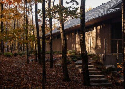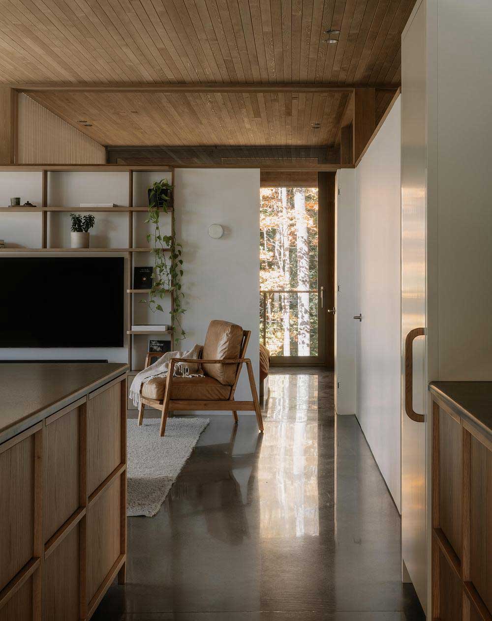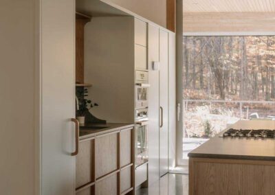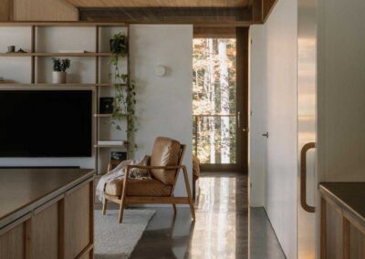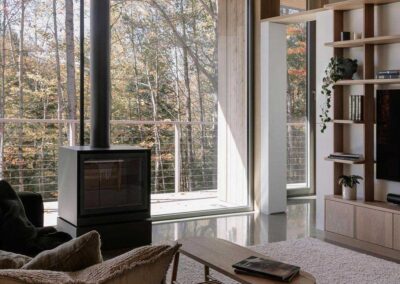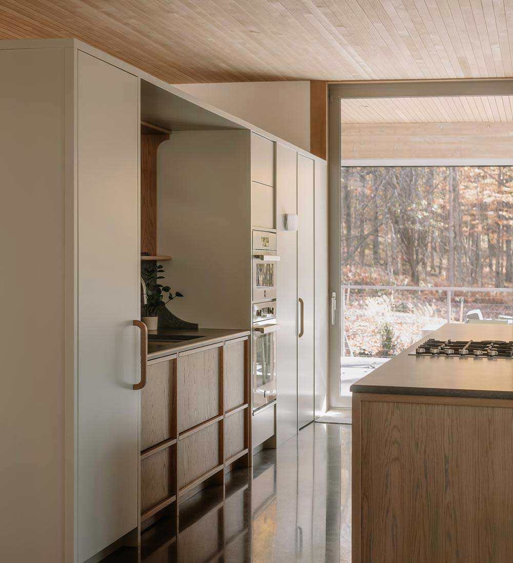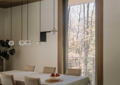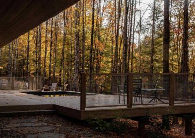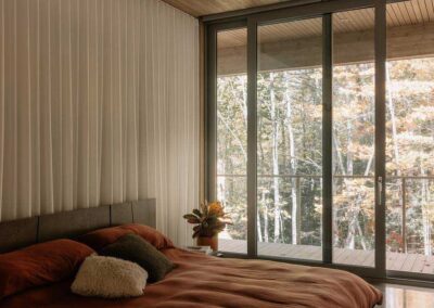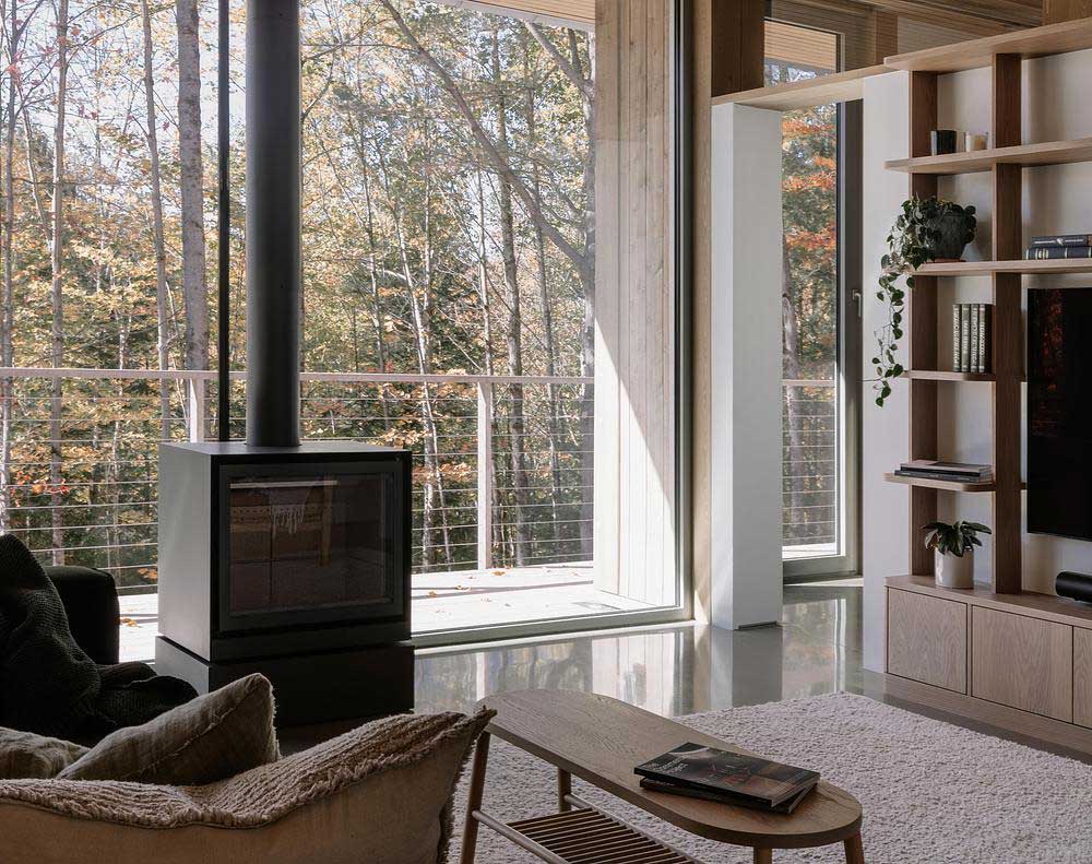 “El objetivo no era enmarcar el bosque como una imagen”, añade Francis Provost , arquitecto del proyecto, “sino crear espacios que se leyeran como verdaderas extensiones del interior, vinculando físicamente la arquitectura a su contexto forestal”.
