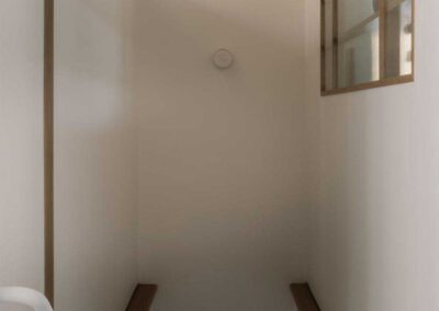 Esta lógica se extiende incluso a las funciones más cotidianas. En lugar de un garaje convencional, el espacio para el auto se concibe como un volumen cubierto de reserva: una habitación exterior a la espera de ser utilizada. Cuando el auto está ausente, la arquitectura permanece: el refugio se convierte en una terraza, un umbral o un espacio habitable flexible, reforzando la idea de una casa que multiplica los espacios habitables en lugar de los metros cuadrados cerrados.