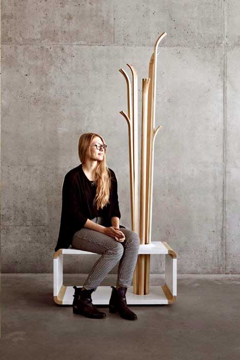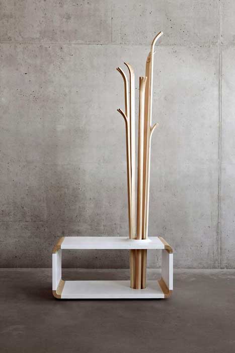 » Tilia» es un multifuncional, suspensión independiente para el espacio moderno; una forma sencilla pero elegante eleva la humilde madera y llama la atención sobre su oficio tradicional. Enfoque poético de Prussakowska se fusiona a la perfección siete perchas de madera agraciado con un banco blanco curvado que completaría el vestíbulo de cualquier hogar.